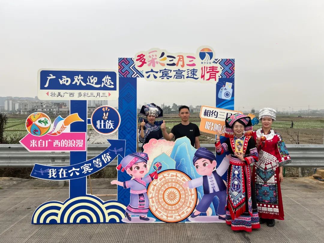 六賓收費(fèi)總站則通過在賓陽南收費(fèi)站設(shè)置“三月三”特色打卡點(diǎn),吸引過往司乘紛紛駐足拍照打卡、發(fā)視頻稱贊,活動現(xiàn)場歡聲笑語不斷。