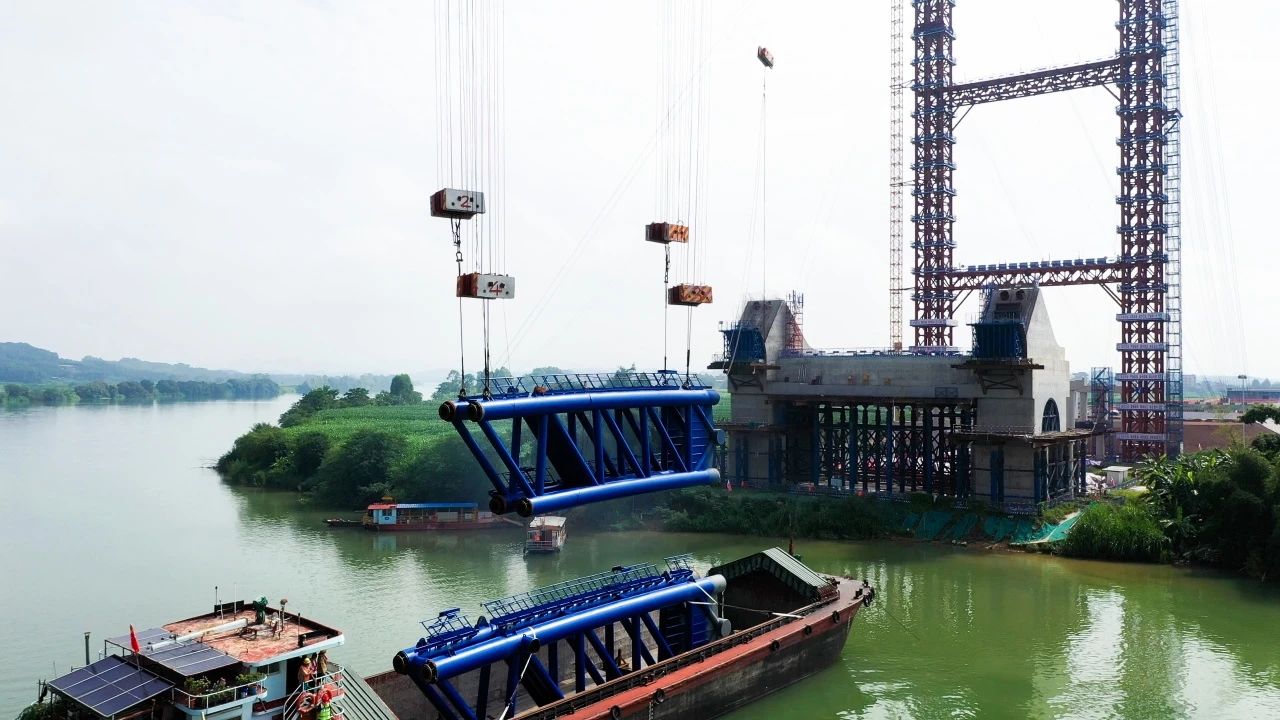 8月8日,南寧南過境線(吳圩機(jī)場(chǎng)至隆安延長(zhǎng)線段)公路上正右江特大橋首節(jié)拱肋順利完成安裝,標(biāo)志著這座項(xiàng)目關(guān)鍵控制性工程正式進(jìn)入拱肋安裝的重要階段。