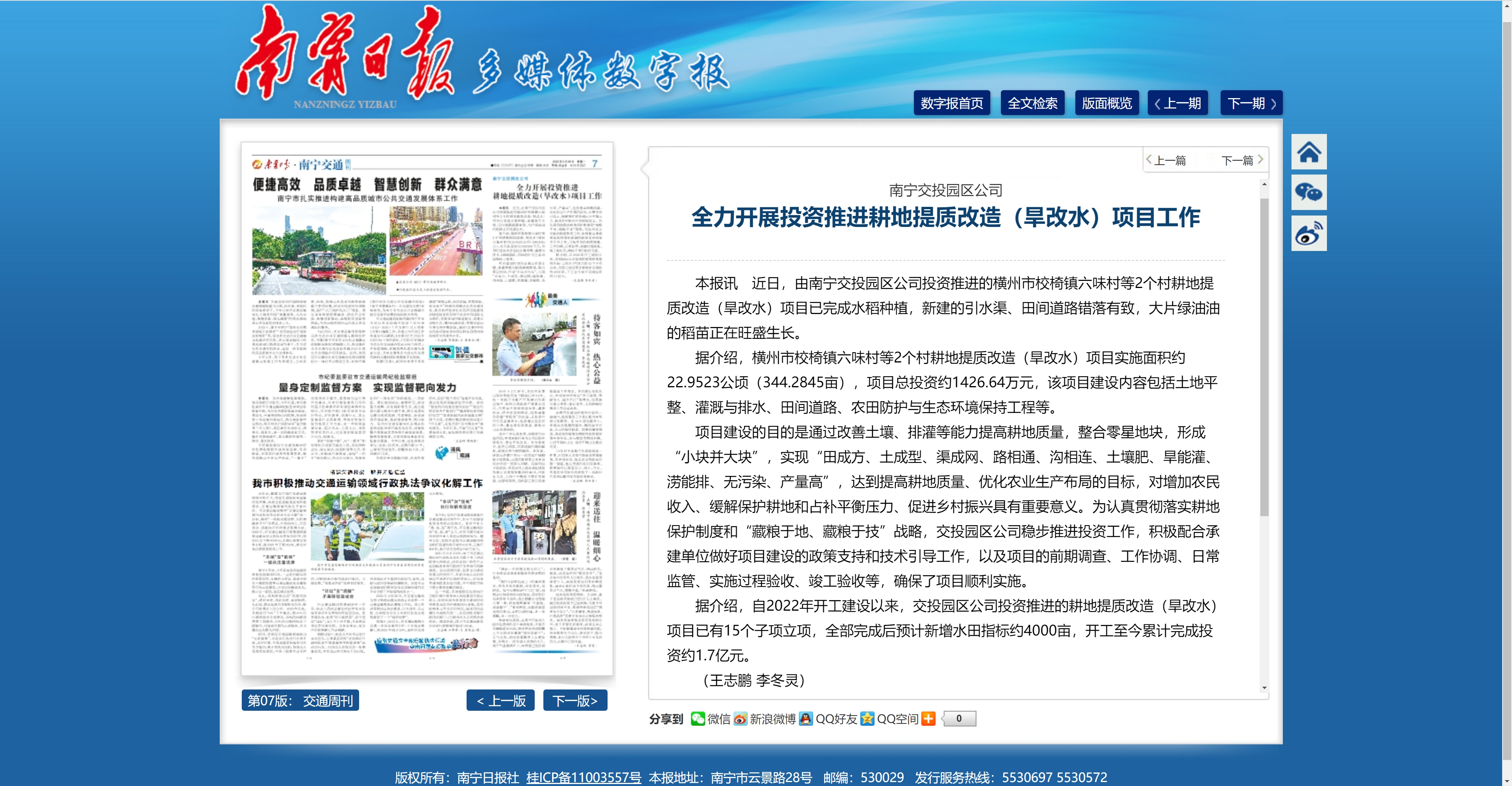 南寧交投 全力開展投資推進耕地提質(zhì)改造(旱改水)項目工作